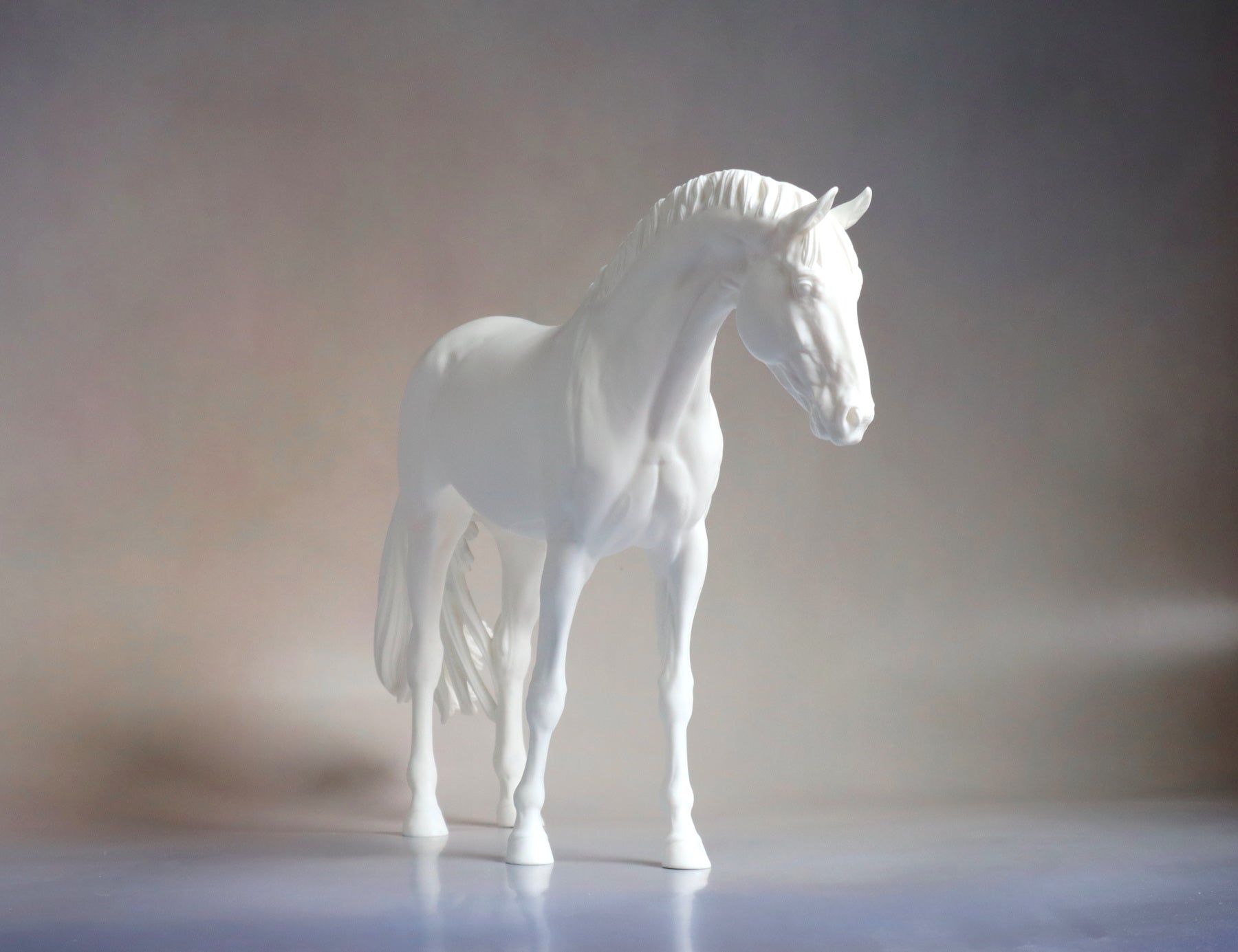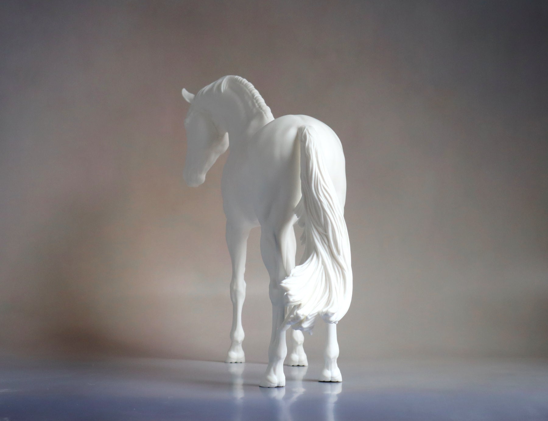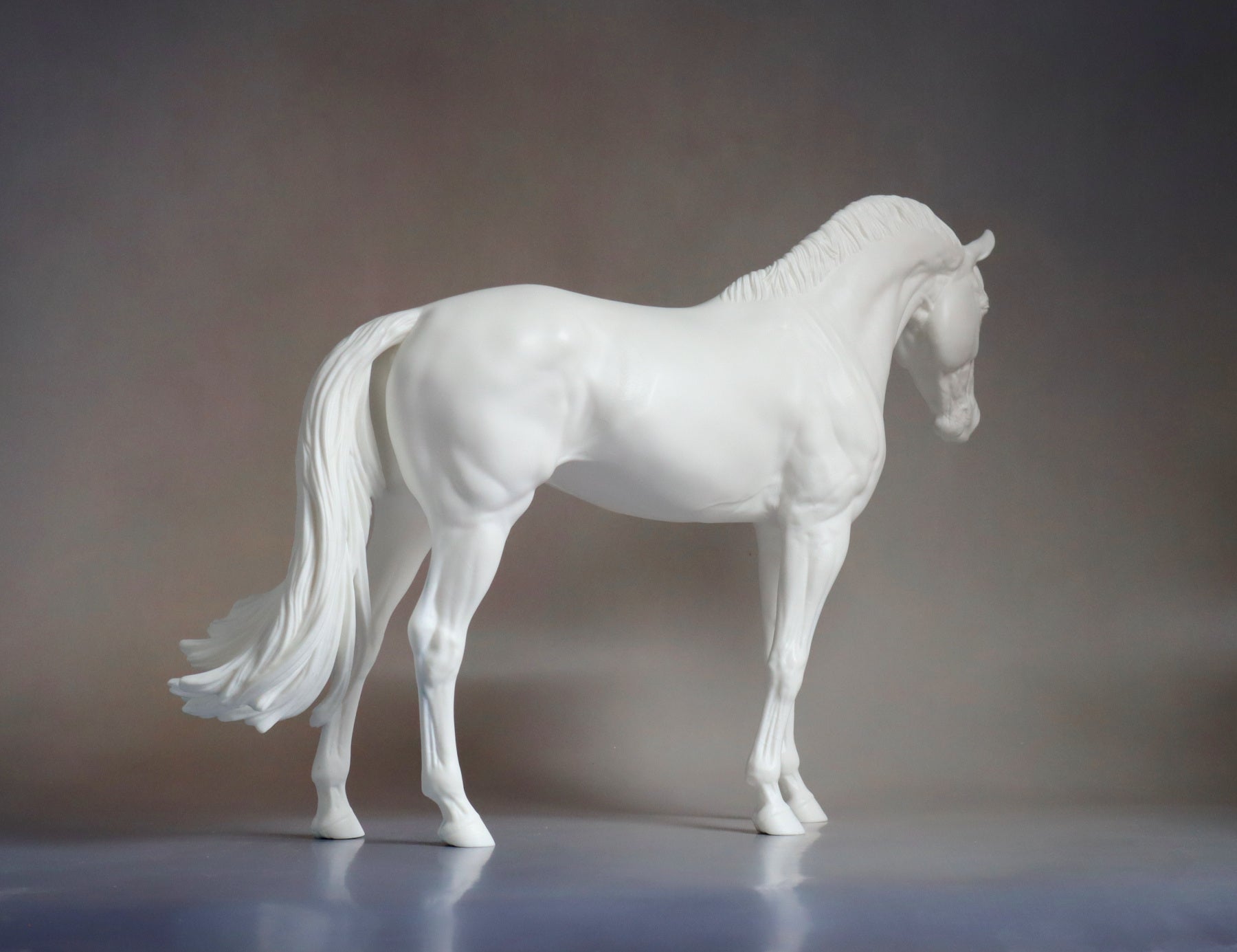 This is Riordan, a traditional scale (1:9) Warmblood stallion, sculpted and produced by Eva Rossiter.